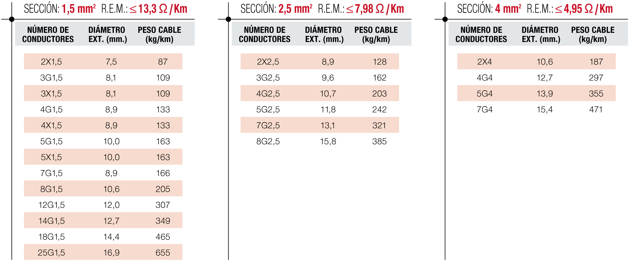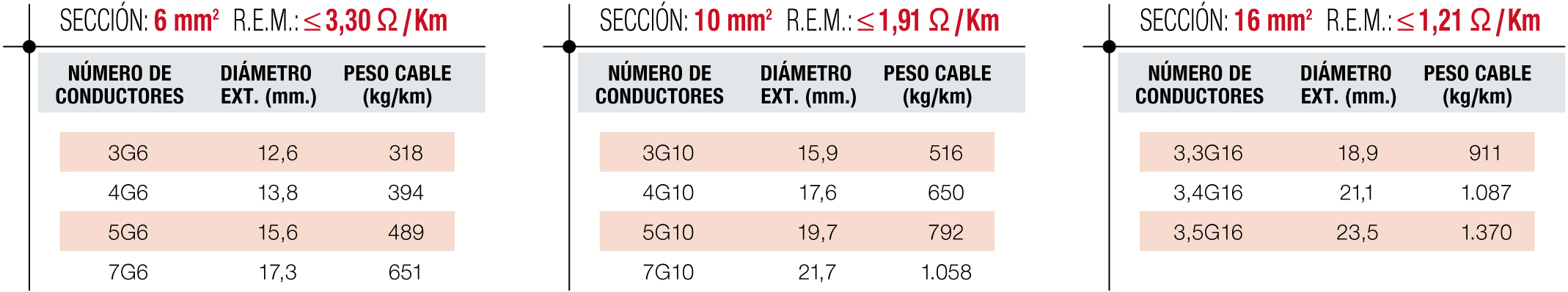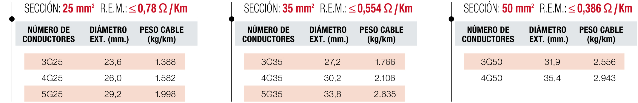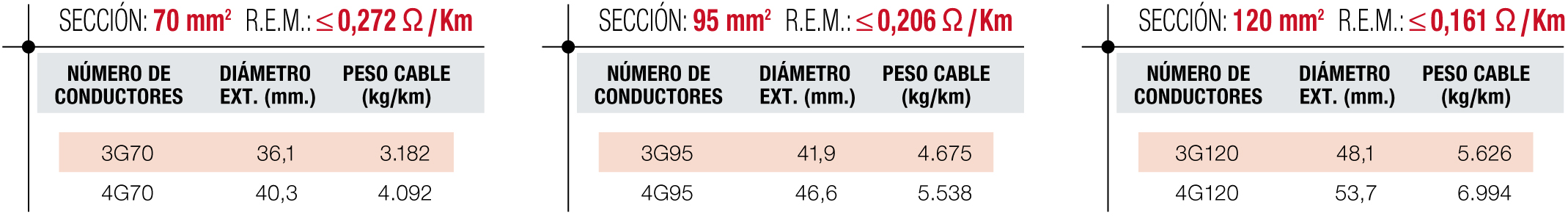 - Conductor: Cobre electrolítico Clase 5.