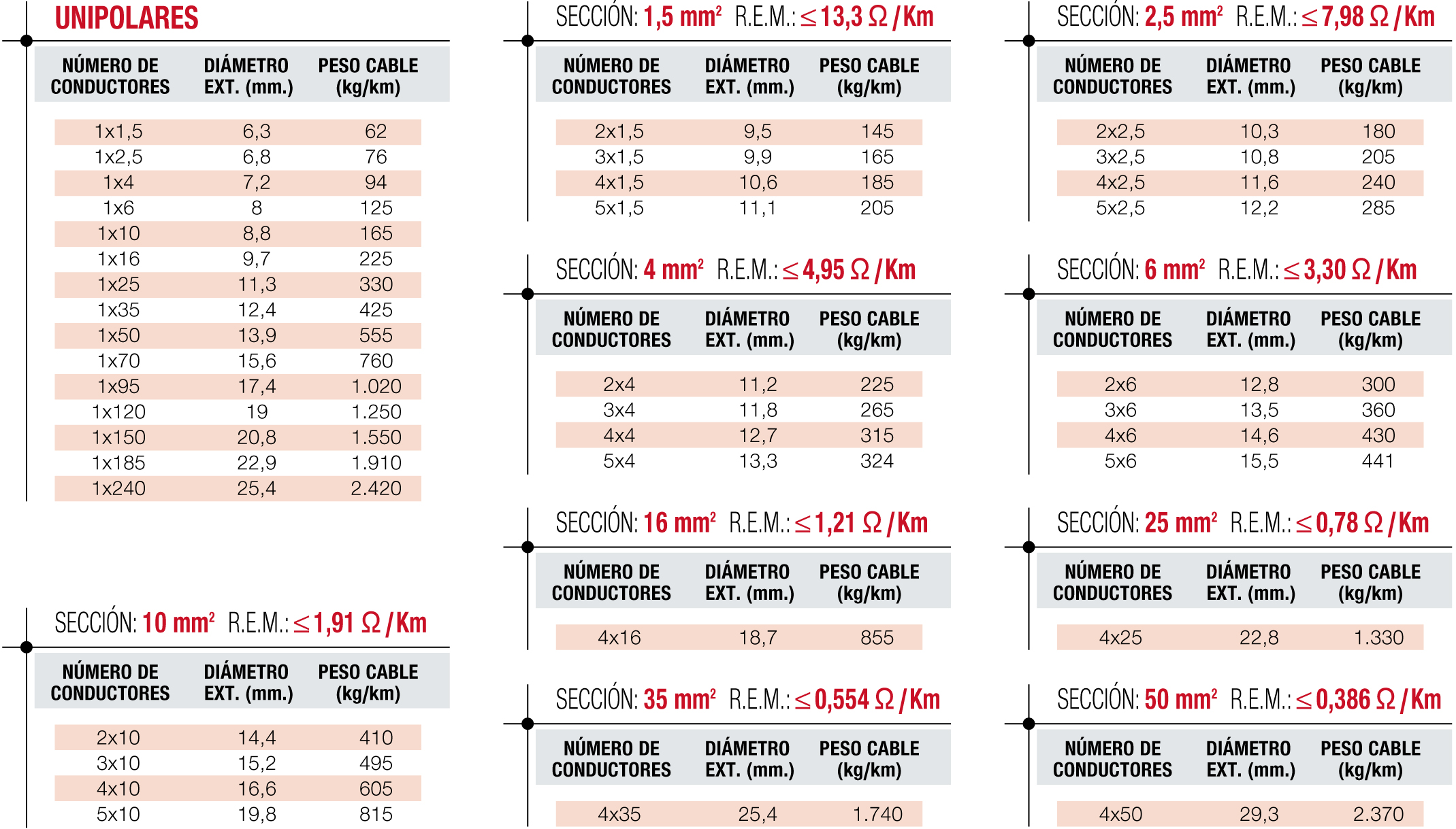 • Resistencia eléctrica conductor: Ω/km. S/Norma: UNE-EN 60228