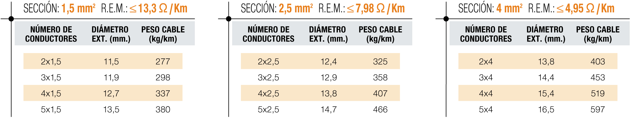 - Conductor: Cobre electrolítico flexible Cl. 5