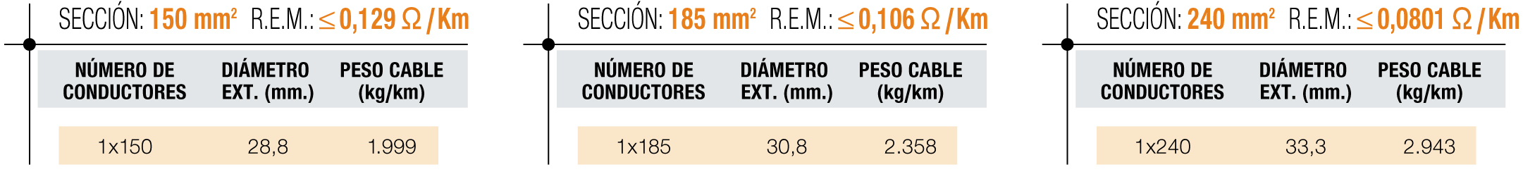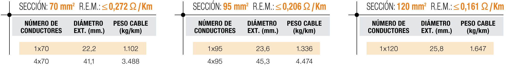 - Aislamiento: Polietileno reticulado XLPE tipo DIX 3
