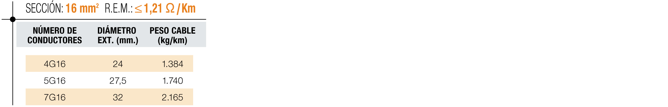 • Conductor: Cobre electrolítico Pu Cl. 5