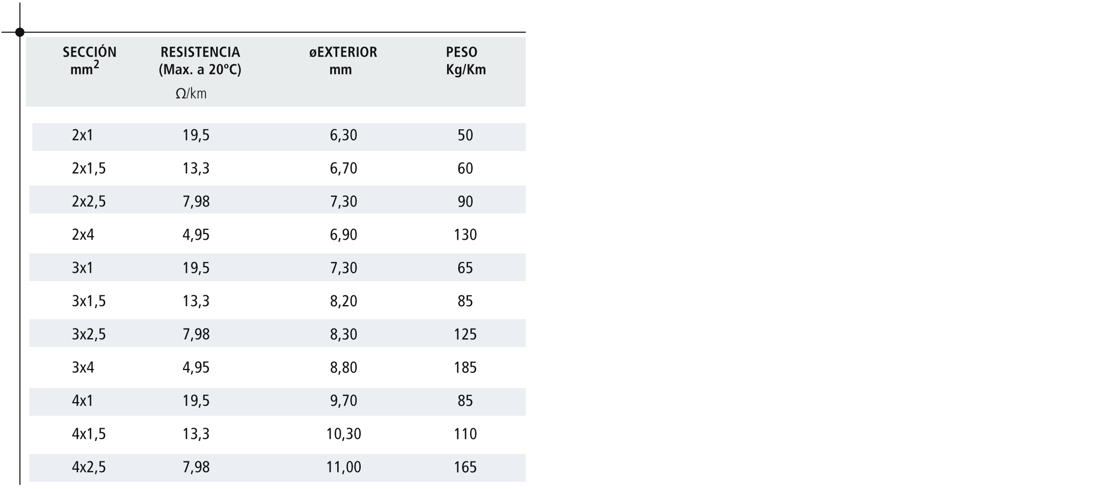 • No propagador de la llama. S/Norma: IEC 60332-1-2, IEC 60332-1-2