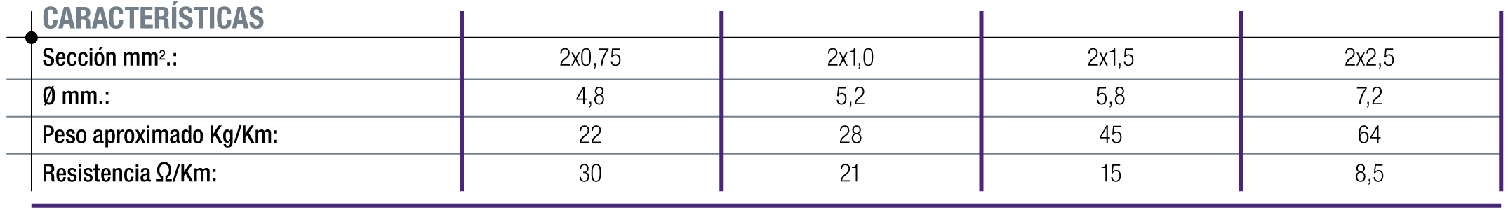 - TENSIÓN DE SERVICIO 300/500 V. ≤1 mm²; 450/750 V. ≥ 1,5 mm²