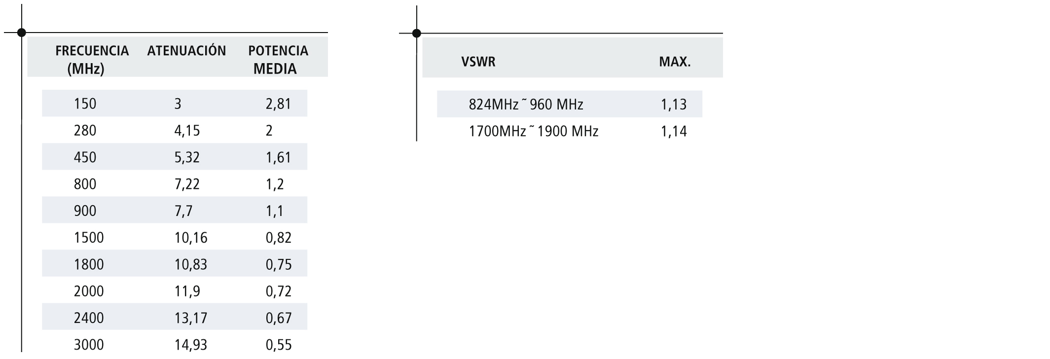 • Impedancia: 50±2 Ω