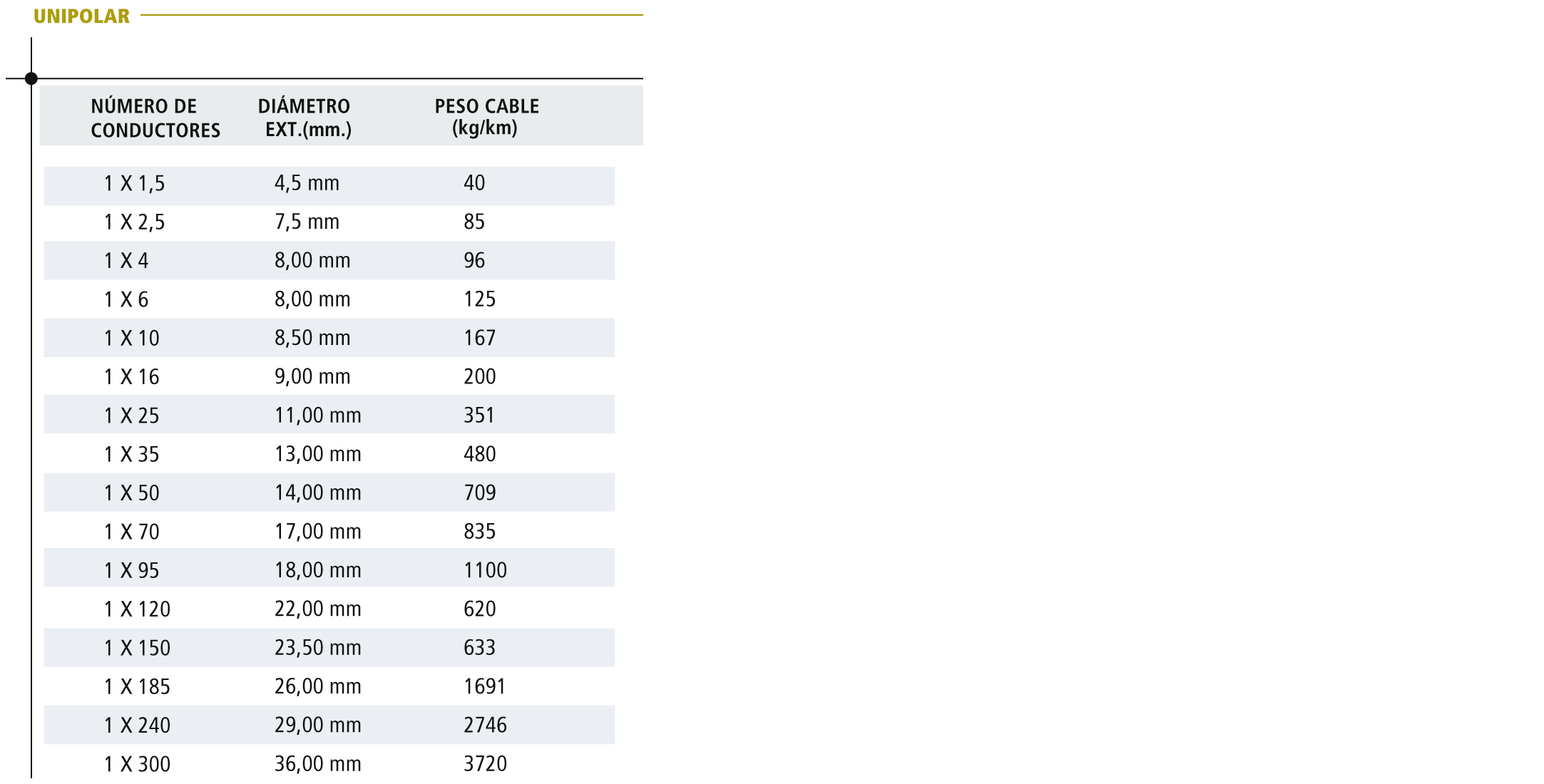 - TENSIÓN DE SERVICIO 300/1000 V.