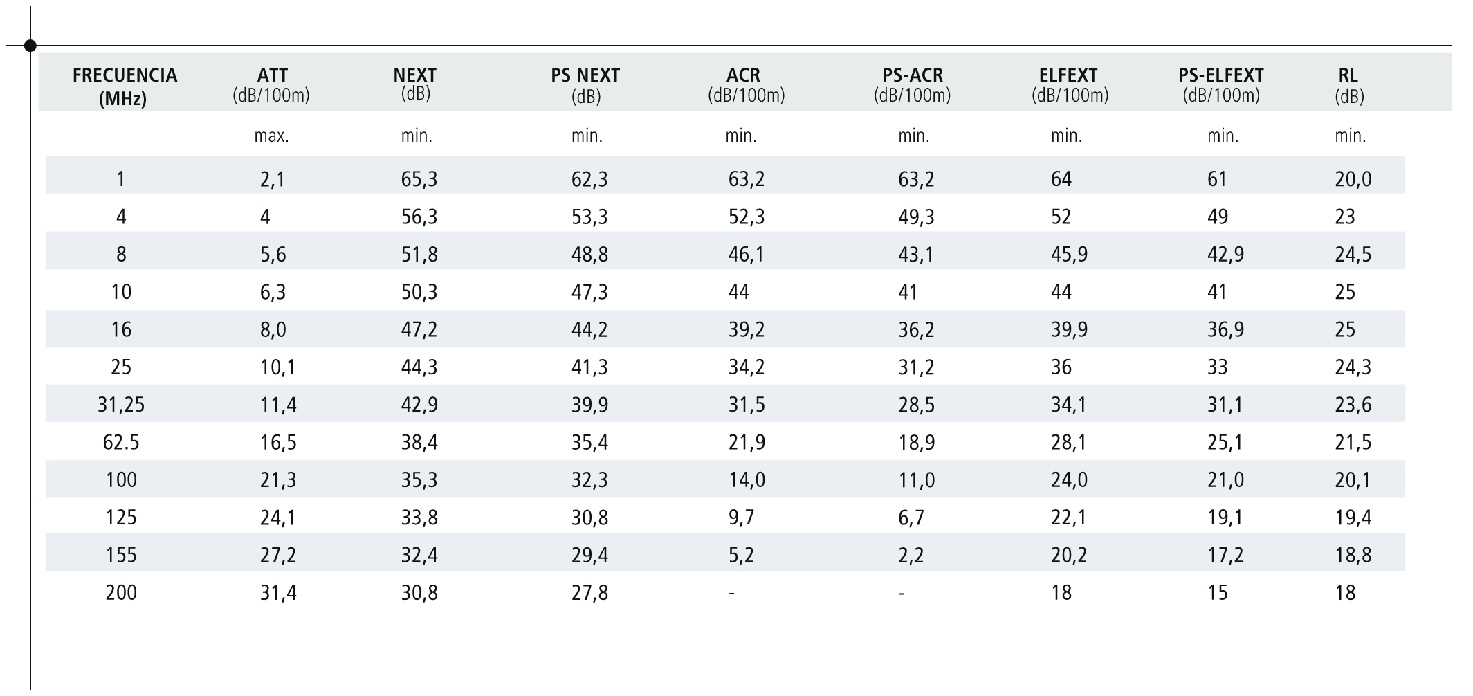 • Impedancia (100 MHz ): 100 ± 5 Ω