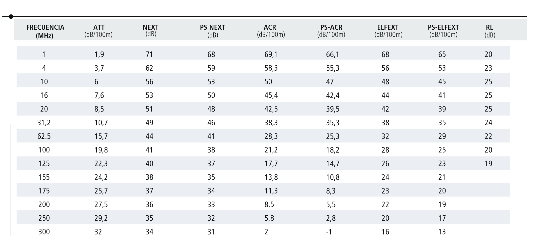 - Impedancia (100 MHz ): 100 ± 15 Ω