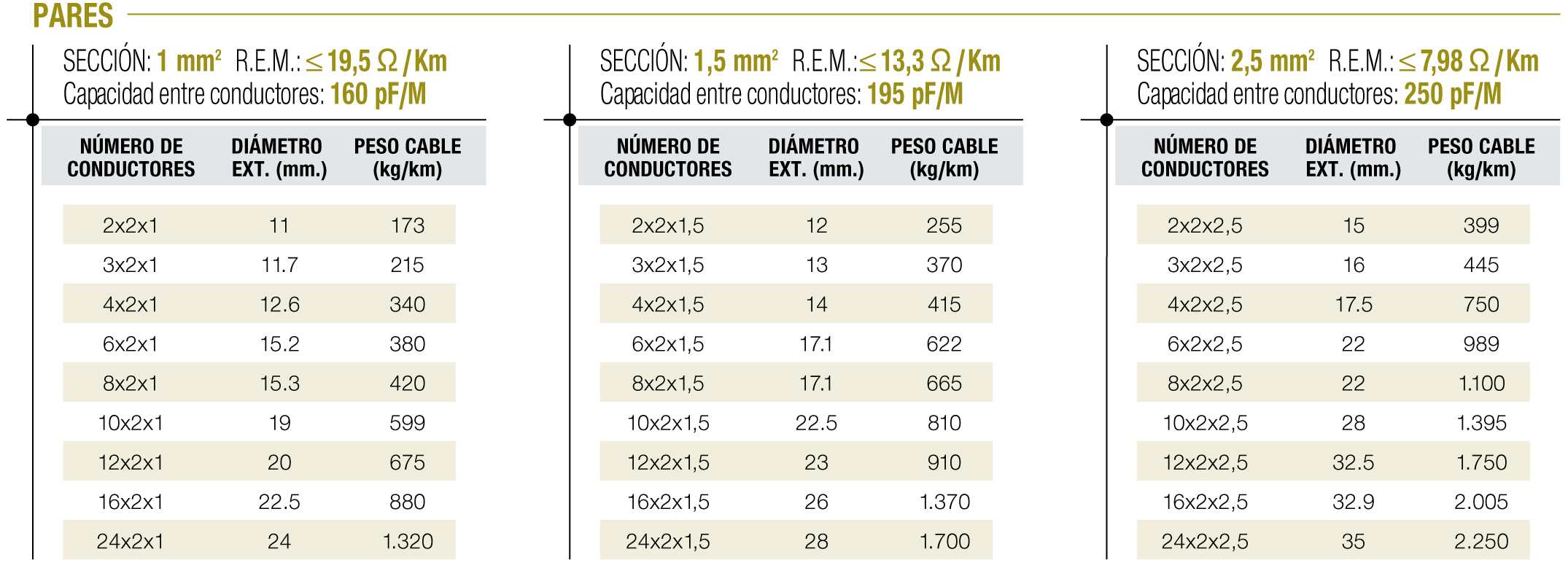 Cable para transmisión de datos, conexión de ordenadores, terminales y unidades periféricas, transmisiones telefónicas. Con pantalla de aluminio poliéster para protecciones eléctricas y electromagnéticas.