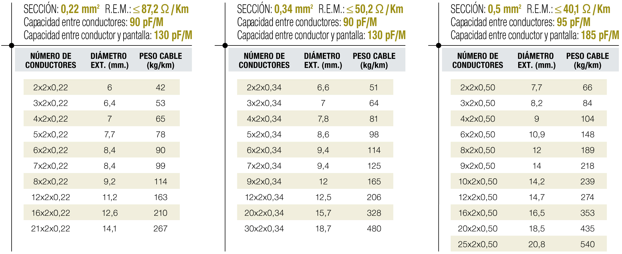 Cable flexible formado por pares apantallados al par y al conjunto con pantallas de aluminio, destinado a transmisión de señales y datos en informática, en equipos de control electrónico, aplicaciones telefónicas, intercomunicación, instrumentación, etc., especialmente indicado en instalaciones con riesgo de interferencias eléctricas y electromagnéticas.