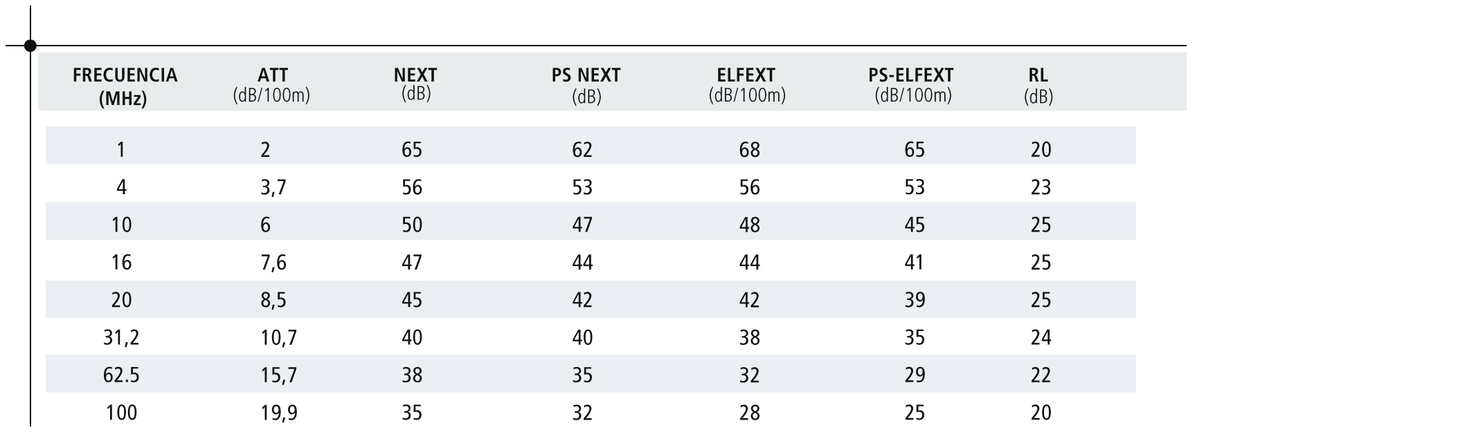 - Retardo de propagación: ≤427 ns/100 m