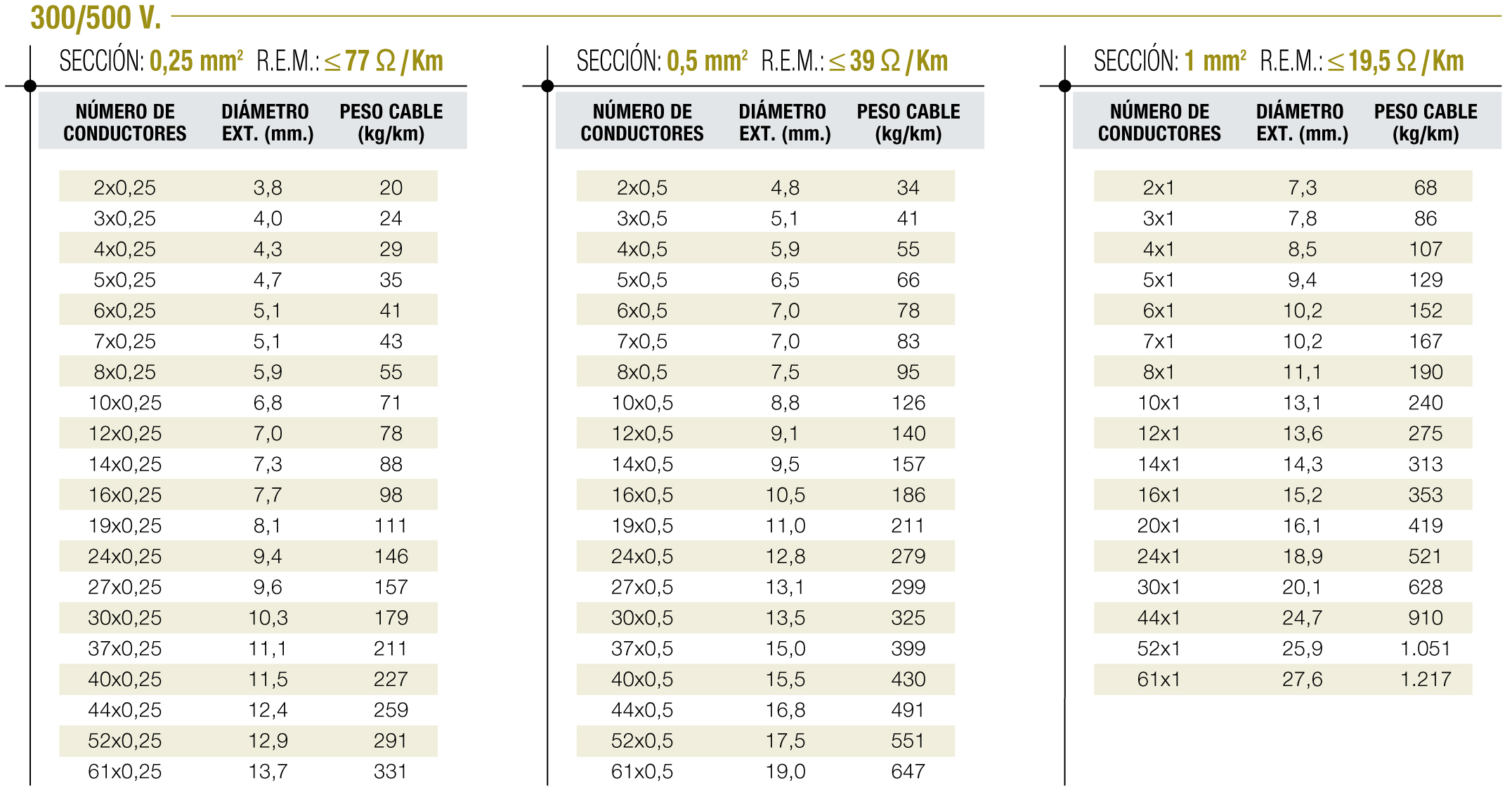 - TENSIÓN DE SERVICIO 300/1000 V.
