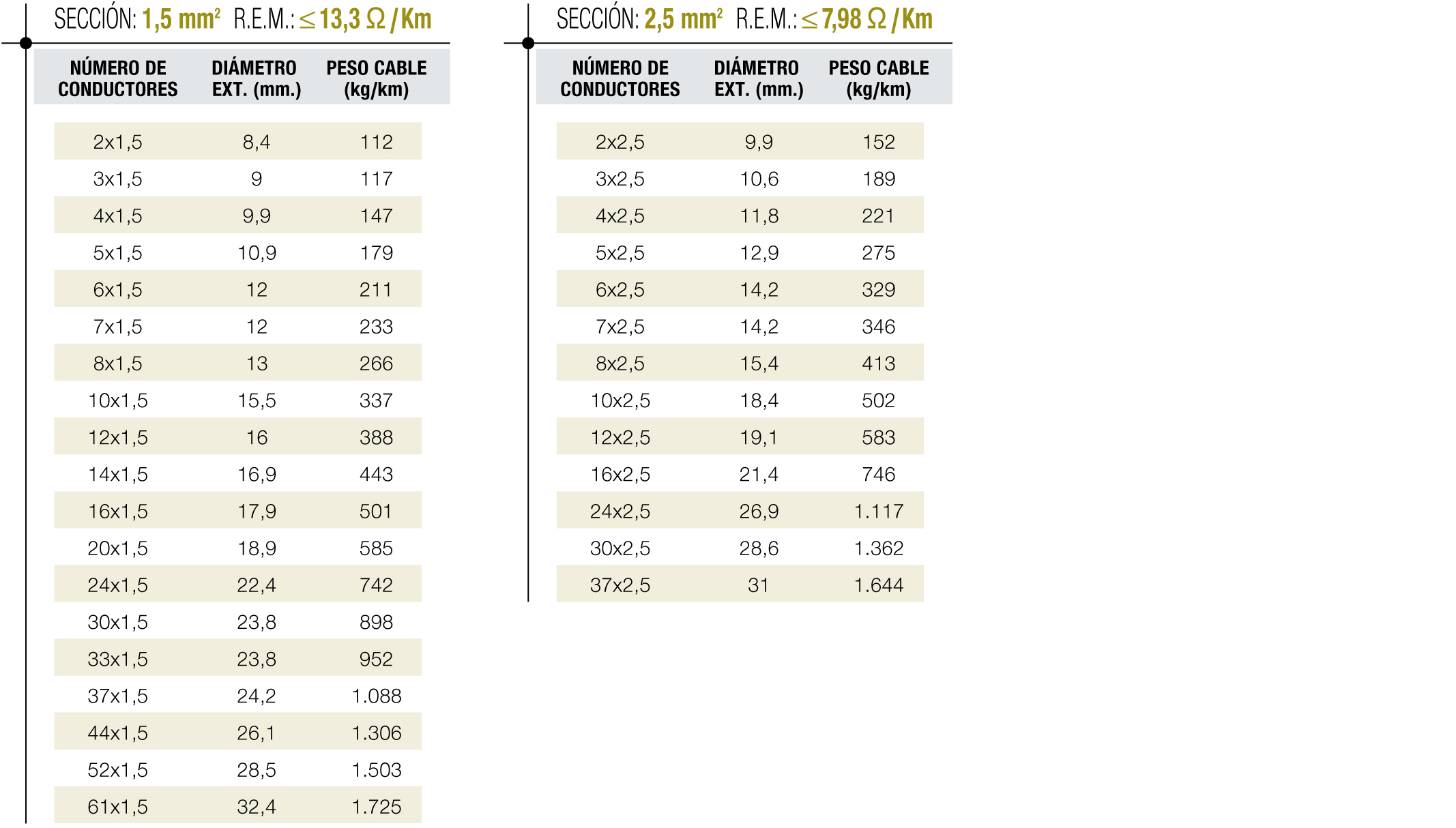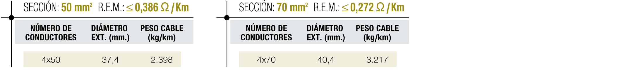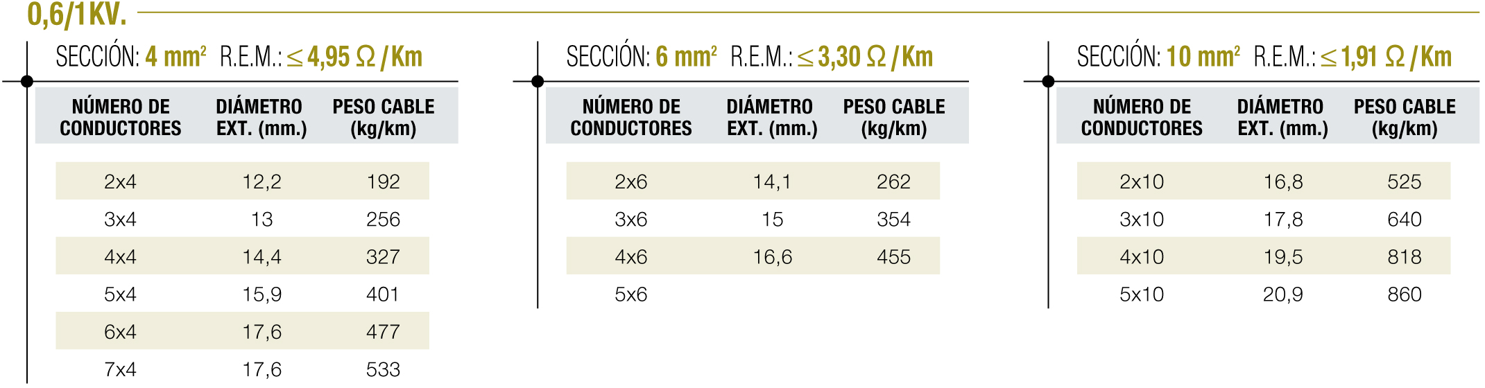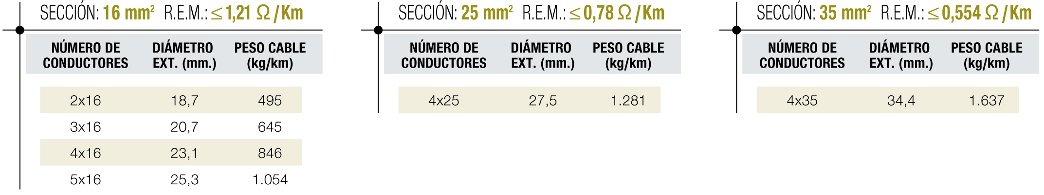 - Resistencia eléctrica conductor: Ω/km. S/Norma: UNE-EN 60228