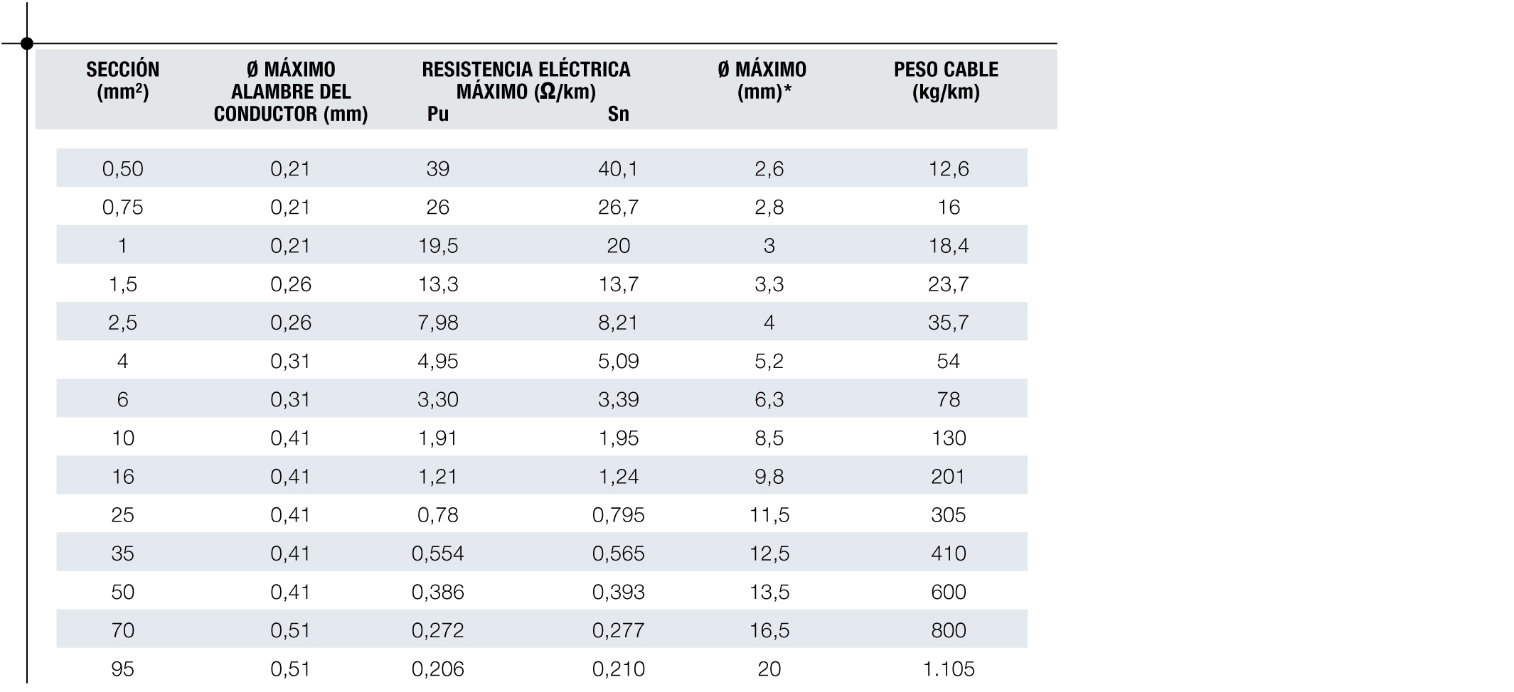 • Conductor: Cobre electrolítico recocido Pu o Sn Cl. 5