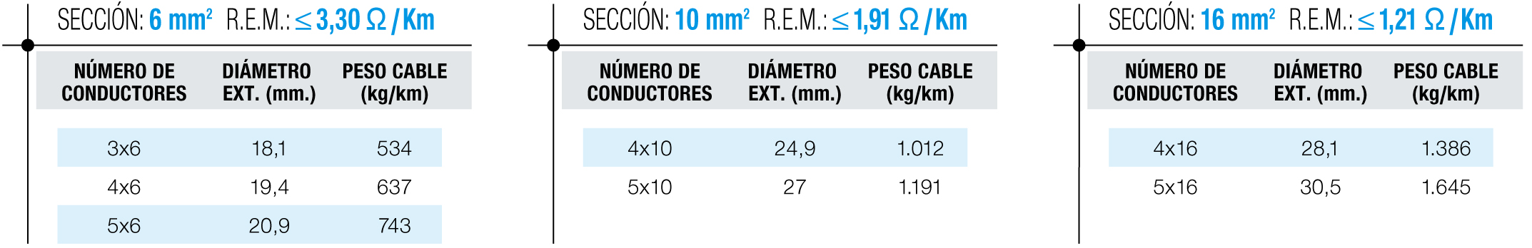 - Conductor: Cobre electrolítico recocido Pu Cl. 5 ó 6
